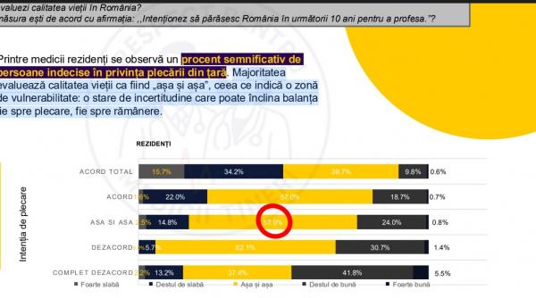 „Atât în rândul studenților, cât și al rezidenților există o categorie neutră – cea mai vulnerabilă și indecisă în privința viitorului profesional. Acești respondenți pot încă fi convinși să rămână și să profeseze în România”, subliniază autorii cercetării.