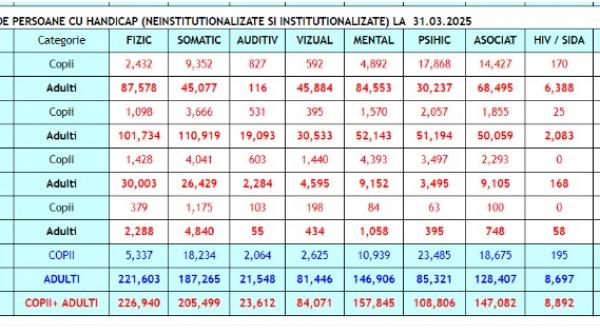 Numărul persoanelor cu dizabilități a înregistrat o creștere foarte mare de-a lungul anilor, de aici și suspiciunea guvernului că multe certificate au fost obținute ilegal. Conform datelor Agenției Naționale pentru Protecția Drepturilor Persoanelor cu Dizabilități (ANPDP), în 1999 erau înregistrate 410.117 persoane cu dizabilități, iar 23 de ani mai târziu, în 2022 numărul lor crescuse cu mai mult decât dublu, urcând la 875.594. Creșterea a continuat, astfel că în 2024 erau 960.428. Ultima statistică a ANPDP arată că la 31 martie 2025, numărul persoanelor cu dizabilități aflate în evidență crescuse la 966.637, dintre care 882.941 erau adulți și 83.625 copii. La nivelul Capitalei se regăsesc cele mai multe personae aflate în această situație - 83.311, iar pe locurile următoare se află județele Prahova - 28.793, Argeș - 36.360 și Iași - 35.954.