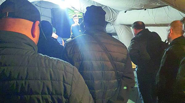 O întrebare plutește prin cort și până la urmă e pusă: cum ne-a găsit Poliția atât de repede, să ne dea ordinul de mobilizare de pe-o zi pe alta? „Să-ți zic: eram cu nevasta-mea alaltăieri, a sunat la ușă cineva. Aia, nevastă-mea, vine în bucătărie, eu aveam un pahar -«vezi că te caută de la Secție». M-am cam speriat, domnu, vă dați seama”, își aduce aminte un mobilizat trecut de la lăcătuș mecanic la taximetrie. Altul, cu tatuaje pe dosul palmei și cu gluga trasă pe ochi mormăie: „Au de toate băieții, te găsesc oriunde. Îți găsesc telefonul, adresa, tot. La o tâlhărie de acum un an, m-am trezit că mă sună pe mine de la a 17-a. De unde or fi avut numărul? Dar nu eram eu cu fapta”. „Când te prinde, te prinde", se aude dintr-o parte unul ofticat și nu prea. „Nu știu dacă a fost în scurt. Nu că aș fi avut vreo treabă, că mi-a zis și nevasta: «Dar ce ai tu de făcut?». Când am auzit-o, am zis că există Dumnezeu și, dacă ne-ar fi ținut și vreo trei zile pe aici, ar fi fost un Dumnezeu bun de tot. Așa am venit, am înțeles că ne dau scutire pentru serviciu”.