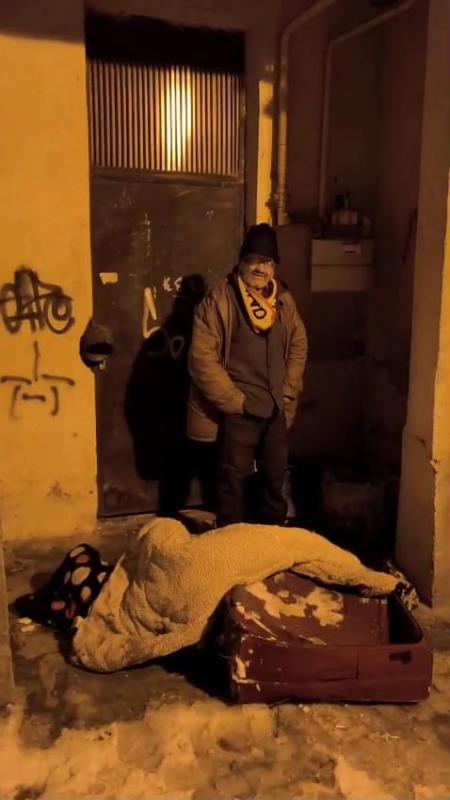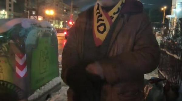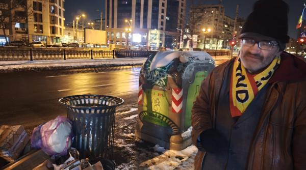 Când îl vezi pe stradă pe timp de zi, zici că e vreunul de la țară care abia a ajuns în Capitală, la rude, cu desagii plini. Ține peste el un sacou, iar deasupra are cojoc, pantalonii sunt groși peste galoșii de cauciuc. Ce e mai altfel e fularul – unul de ultras al echipei naționale de fotbal. Căciula e îndesată pe chelie până la rama ochelarilor gri – fund de sticlă. Pe un umăr saltă două papornițe legate la gură, cu cealaltă mână duce o plasă cu gură mare de supermarket. În bagaj, nea Fane își duce viața, ce a agonisit în 62 de ani: un aparat de radio, un telefon fără baterie și fără cartelă și multe țoale. Peste ele, mâncare de pachet. Pe greul năprasnic care s-a pus deja printre blocurile din buricul orașului, acolo pe unde curge gârla Dâmboviței, Fane și-a pus agoniseala pe o bancă. Se uită la pojghița de peste apă, dă din cap: „Mă, o să fie greu”. Omul cunoaște „după semnele naturii și durerea de oase” schimbările climatice. E pe stradă de mult, nici el nu mai știe de când: „Parcă de prin 2016. Dar, de drept, sunt singur…adică nu sunt chiar singur, sunt io cu Dumnezeu…încă de pe timpul lui Ceaușescu. De când a vândut casa aia bătrână, mama mea, ca să nu pună laba pe ea o bagaboantă pe care o adusesem în casă. Știți, domnu, eu sunt cu capu’”.