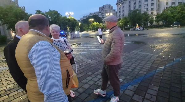 Brigada lui nea Viorel pierde membrii încă de la plecare. „Boschetara” nu mai vine. Îi e lene, zice că pleacă acasă. Rămân patru inși, hotărâți să coboare la metrou. Drumul e scurt când faci politică. „Dacă câștigă ăsta, Nicușor, el a zis, o să bage elgibitiu în școli”, începe nea Viorel. Doamna din „brigadă” e mai hotărâtă decât toți bărbații la un loc: „Ascultați-mă ce vă zic eu acum! Simion nu pierde! O simt!”. Nea Viorel schimb, brusc, subiectul: „Am aflat! Ați văzut câți jandarmi erau strânși, nu? (forțele de ordine de la Piața Victoriei însemnau cam o duzină de mașini - n.n). Ei, ăștia au fost trimiși să ne amendeze. Eu știu!”. Bărbatul pare traumatizat după protestele georgesciene, se jură că a primit zeci de amenzi - „Pe unele le-am contestat, pe altele le-am plătit. Câte sunt? Multe rău. Dacă ne amendează și acum? Să fim atenți”. Din brigadă, ăla mai bătrân, cu o mustață pe oală, nu înțelege: „Pentru ce să ne dea amendă?”. Nea Viorel răspunde, în lumea lui: „Păi, că am protestat, d-aia”.