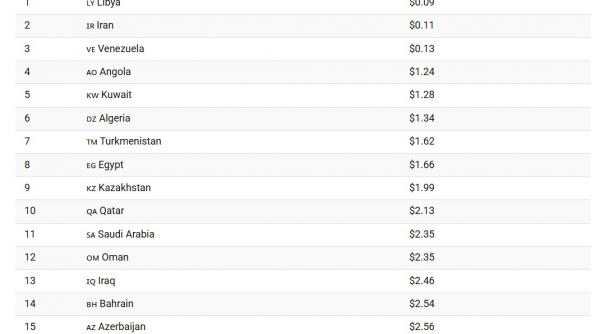 În țările bogate în petrol, precum Libia și Iran, combustibilul este puternic subvenționat, ceea ce îl face mai ieftin decât apa îmbuteliată în unele cazuri. Între timp, regiunile dense, dependente de importuri, precum Hong Kong, se confruntă cu cele mai mari prețuri din lume. Cea mai ieftină benzină se află în națiunile bogate în petrol, iar Libia se află în fruntea listei, cu doar 0,09 USD pe galon, urmată de Iran și Venezuela, toate sub 0,15 USD. În aceste țări, guvernele subvenționează combustibilul pentru a menține stabilitatea politică și a sprijini consumul intern. În Libia, benzina este chiar mai ieftină decât apa îmbuteliată.