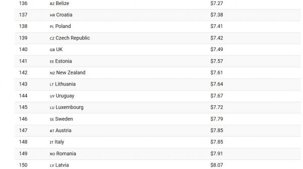 Cu un preț de 7,91 USD pe galon, țara noastră se numără printre țările cu cea mai scumpă benzină din lume. La nivel UE devansăm ca preț țări precum Croația (7,38 USD pe galon), Polonia (7,41), Cehia (7,42), Estonia (7,57), Luxemburg (7,72), Suedia (7,79), Austria (7,85) Italia (7,85) etc. De asemenea, în Bulgaria benzina este mult mai ieftină (6,39) comparativ cu ce se vinde în benzinăriile de la noi, în țara vecină fiind a doua cea mai ieftină benzină din UE, după Malta, unde se comercializează cu 5,88.