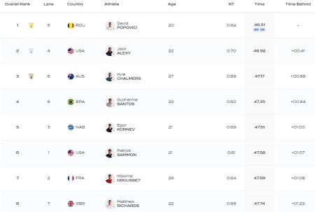Sportivul nostru a fost urmat americanul Jack Alexy, cu 46.92. Australianul Kyle Chalmers a completat podiumul, cu 47.17.