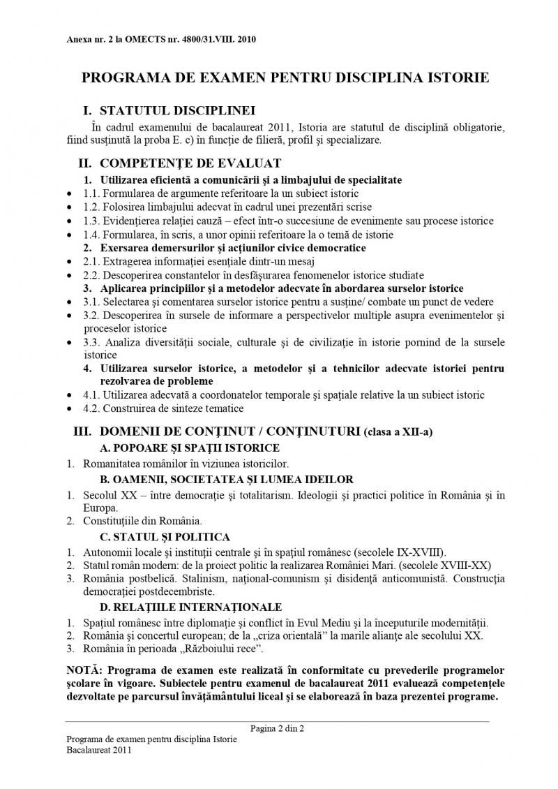 Istoria este disciplină obligatorie la anumite specializări, fiind susţinută la proba E. c) în funcţie de filieră, profil şi specializare.
