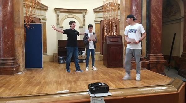 Spectacolul trupei de teatru a Colegiului Economic Nicolae Kretzulescu va avea loc la ora 16.45, iar cel al trupei Colegiului Național Gheorghe Șincai la ora 17.45.