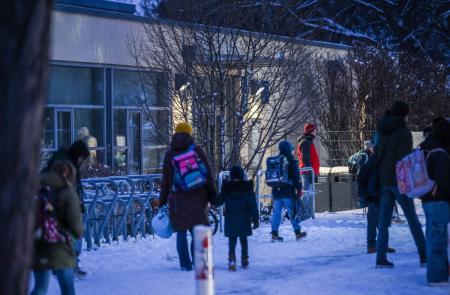Hepta/Berlin: Copiii sunt aduși la școala din Mühlenau de către părinți. Școala a fost deschisă pentru asistență medicală de urgență din cauza unei pene de curent.