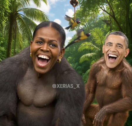 Videoclipul postat de Donald Trump înfățișa fața lui Barack Obama, primul președinte de culoare al țării, și pe cea a soției sale, Michelle Obama, suprapuse pe corpuri de maimuțe.
