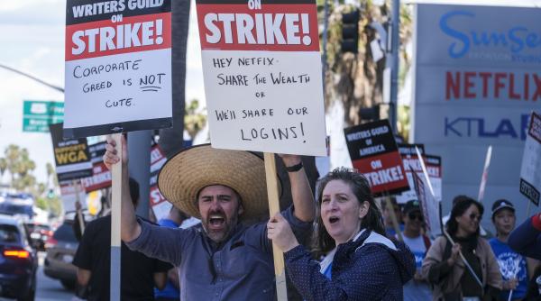 Nu sunt programate noi negocieri cu Sindicatul scriitorilor din America (Writers Guild of America - WGA), aflat în grevă, care reprezintă 11.500 de scenariști de film și televiziune. Greva lor a perturbat producția de emisiuni de noapte și a oprit proiecte de mare anvergură, inclusiv un nou sezon al serialului "Stranger Things" de pe Netflix și un spinoff din "Game of Thrones" pentru HBO, deținut de Warner Bros Discovery (WBD.O).