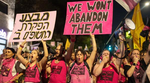 Sâmbătă seara, Tel Aviv și Ierusalim au găzduit unele dintre cele mai mari proteste din ultimele luni, cu apeluri pentru eliberarea ostaticilor rămași și pentru încetarea războiului. În apropierea reședinței lui Netanyahu, vorbitorii s-au succedat la microfon cerându-i să ajungă la un acord cu Hamas, care să le readucă acasă, în siguranță, pe persoanele dragi, la aproape doi ani de la răpirea lor.