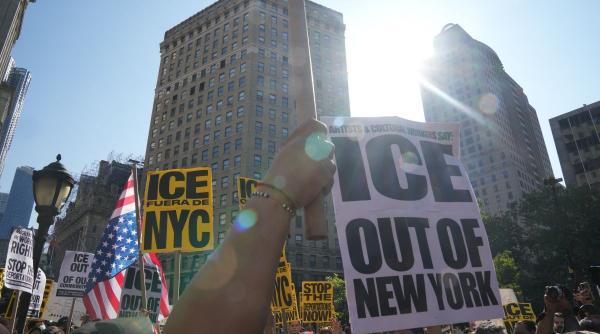 Demonstrația a fost una pașnică. Grupul de oameni s-a adunat în Foley Square, lângă tribunalul din Manhattan, un loc simbolic unde migranții au fost arestați vinerea trecută. Numeroase pancarte purtau sloganul: „ICE, out of New York” („ICE, afară din New York”, n.r.) o referire la agenția federală pentru imigrație, ale cărei operațiuni s-au înmulțit în întreaga țară.