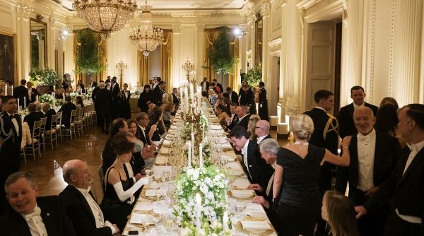 Regele a glumit și despre „ajustările” Casei Albe la proiectul costisitor al sălii de bal susținut de Trump. „Regret să spun că noi, britanicii, am încercat, desigur, propriul nostru proiect imobiliar la Casa Albă în 1814 ”, a glumit el. În acel an, soldații regatului au dat foc clădirii.