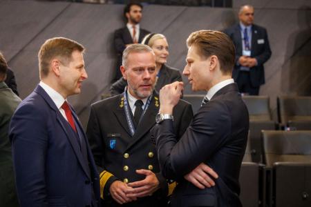 Sursa foto Hepta/De la stânga la dreapta: Hanno Pevkur, ministrul apărării din Estonia, împreună cu amiralul Rob Bauer (președintele Comitetului Militar NATO) și Antti Häkkänen (ministrul apărării din Finlanda) în timpul unei reuniuni a miniștrilor apărării din statele NATO de la Bruxelles.