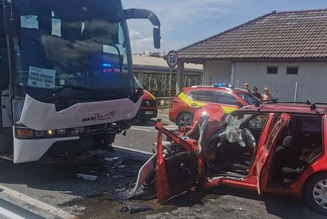 Un grav accident rutier s-a produs pe centura orașului Aleșd, județul Bihor, unde un autoturism în care se aflau patru persoane – trei adulți și un copil – a intrat în coliziune cu un autocar care transporta zece pasageri.