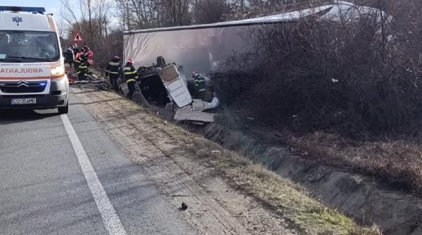 Șoferul camionului a primit îngrijiri medicale la fața locului și a fost transportat la spital de către echipajul Serviciului Județean de Ambulanță.
