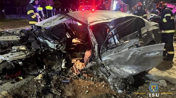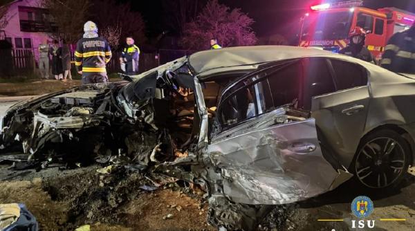 Imaginile de la locul accidentului arată gravitatea impactului, cu autoturismul complet distrus și ușile laterale deformate. Mașina prezintă avarii majore atât în zona motorului, cât și în partea stângă, sugerând un impact frontal-lateral de mare intensitate.