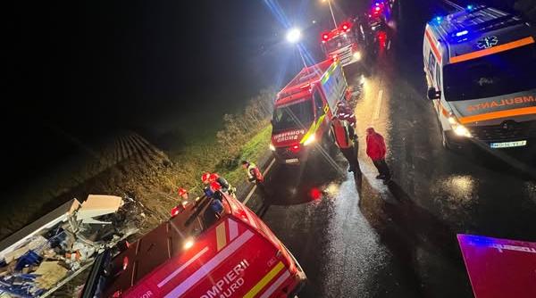 În urma impactului, autocamionul de curierat s-a răsturnat în afara părții carosabile. Șoferul acestuia a fost găsit încarcerat și în stare de inconștiență, în stop cardiorespirator. Echipajele de intervenție au extras victima și au efectuat manevre de resuscitare, însă, în ciuda eforturilor, bărbatul a fost declarat decedat.