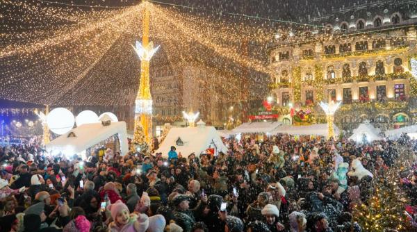 La Sibiu, vineri seara, a fost aprinsă cupola spectaculoasă de lumini din Piața Mare, în vreme ce, la Craiova, s-a dat startul sărbătorilor de iarnă în Piața Mihai Viteazu.