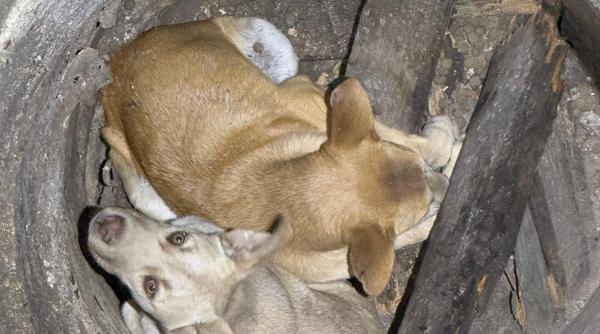 Cu ajutorul echipamentelor de salvare din spații înguste și al unei intervenții atente și coordonate, pompierii au reușit să-i aducă la suprafață pe ambii câini, a precizat ISU.