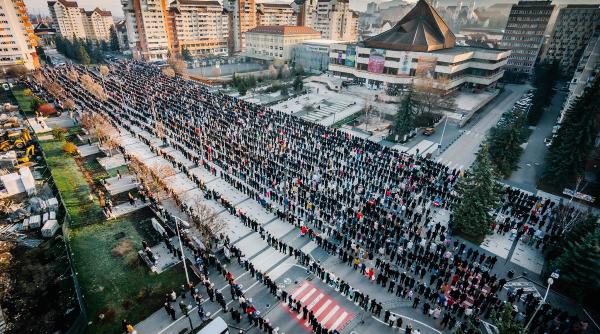 Fotografiile care arată mii de credincioși aliniați perfect în centrul orașului Miercurea Ciuc, au fost postate duminică, de Paște, pe pagina de Facebook a liderului UDMR Kelemen Hunor.