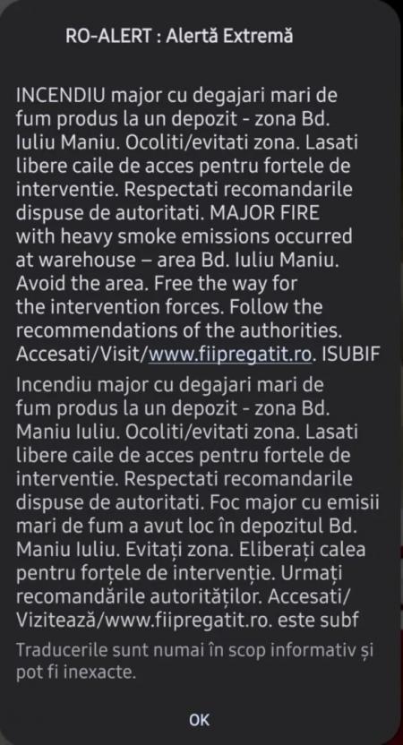 Pentru informarea populației a fost emis mesaj RO-Alert.