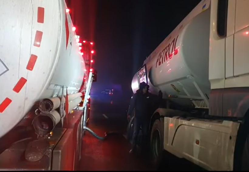 Cisterna a fost implictă într-un accident. Echipele de intervenție au fost nevoite să mute combustibilul înainte de a tracta mașina.