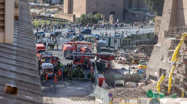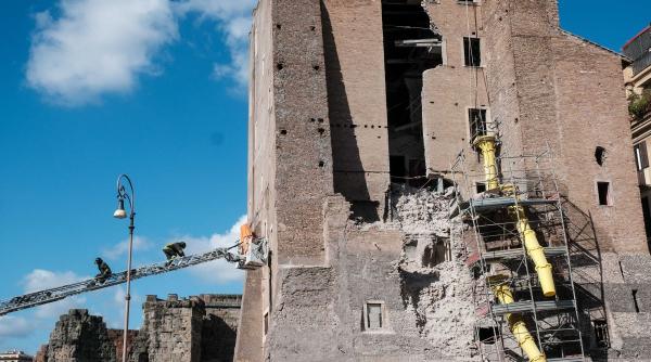 Două prăbușiri, la puțin peste o oră distanță una de alta, au distrus o parte din vechiul Torre dei Conti din centrul Romei. Prima prăbușire i-a luat prin surprindere pe unii muncitori implicați în renovarea clădirii medievale cu vedere spre Largo Corrado Ricci, la Forumurile Imperiale.