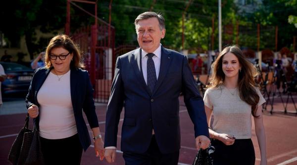 Crin Antonescu a mers la urne alături de soția sa și de fiică și a răspuns în engleză inclusiv jurnaliștilor străini.
