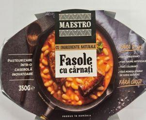 Și produsul „Fasole cu cârnați Maestro” (350 g), vândut în rețelele Profi și Carrefour, a fost retras după ce analizele au arătat prezența unor substanțe neconforme.