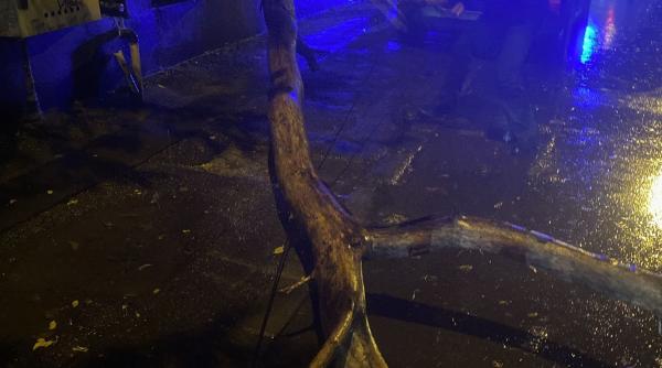 O situație mai gravă s-a produs pe strada Trestiana, în sectorul 4 al Capitalei, unde un copac a căzut peste un autoturism aflat în mers.