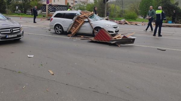 În Furnicari (Bacău) un copac a căzut peste o mașină aflată în trafic, însă șoferul nu a fost rănit.