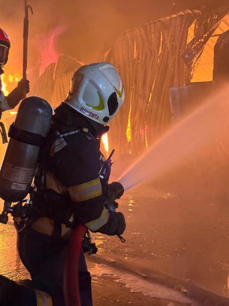 UPDATE 2: Potrivit pompierilor, incendiul se manifestă pe aproximativ 2000 mp, hala de depozitare pe structură metalică, parțial prăbușită.