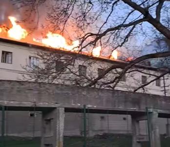 Incendiul se manifestă generalizat la acoperișului unei chilii, pe o suprafață de aproximativ 800 mp. Exsită risc de propagare la întreaga construcție, estimată la circa 1.000 mp, precum și la chiliile învecinate.