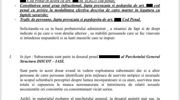 Subsemnata sunt parte în dosarul penal 46/D/P/2021 al Parchetului General – Structura DIICOT – Iași.