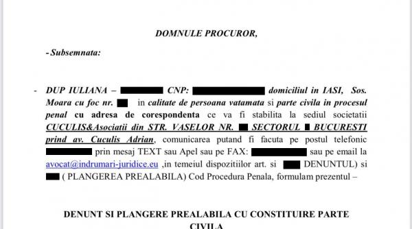 DENUNȚ ȘI PLÂNGERE PREALABILĂ CU CONSTITUIRE PARTE CIVILĂ