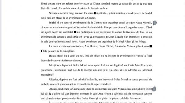 În perioada în care era la Cannes, L.D. relatează că a fost dusă la un eveniment unde M.A. și I.M. (patroni media) au fost prezenți, alături de J.C.V.D., iar fetele erau „trimise” către acesta.
