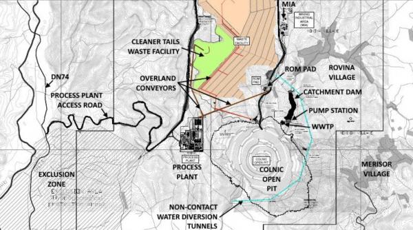 Totuși, în 2024, Curtea de Apel Cluj a anulat avizul de mediu pentru proiectul minier. Magistrații au susținut că, înainte de emiterea avizului de mediu, erau necesare proceduri de consultare transfrontalieră cu Ungaria, așa cum au solicitat organizațiile de mediu Declic și Ecou Rovina București. Proiectul dispune acum de un cadru financiar pentru demararea investiției, dar acest lucru este însă condiționat de îndeplinirea procedurii de consultare cu Ungaria și emiterea unui nou aviz de mediu, conform cerințelor legale.