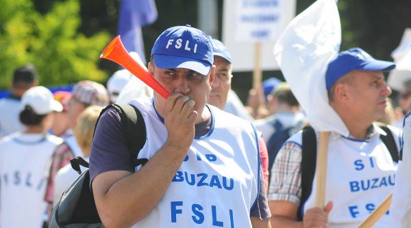 Mii de sindicaliști din întreaga țară au ajuns cu autocare în Capitală pentru a participa la protest.