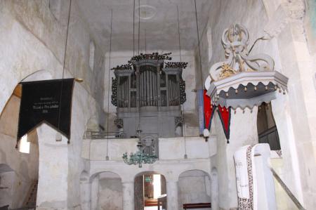 Orga este încă funcțională. „Aceasta era metoda prin care se transmitea aerul produs în burduf către orgă, pentru a putea cânta. O persoană stătea aici tot timpul cât se cânta și trebuia să acționeze această pedală pentru a produce aer”, spune Dana Crișan, apăsând ritmic pe o grindă din lemn de care este agățat un bolovan pe post de contragreutate.