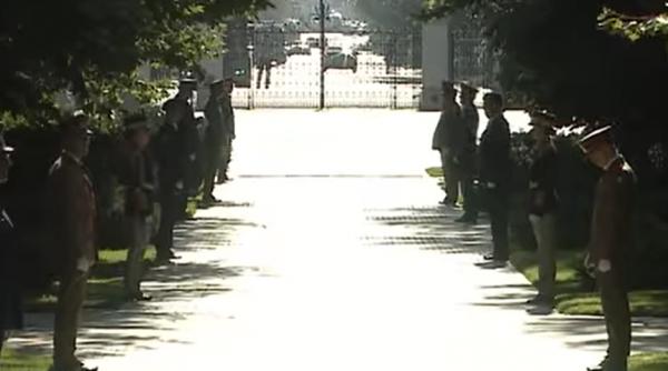 Cortegiul funerar a intrat în curtea Palatului Cotroceni pe Poarta Marinescu, unde a fost întâmpinat de Garda de onoare. Brigada 30 Gardă „Mihai Viteazul” a prezentat onorul.