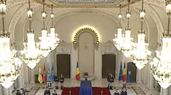 Sicriul cu trupul neînsuflețit al fostului președinte al României Ion Iliescu va fi depus pe catafalc în Sala Unirii.