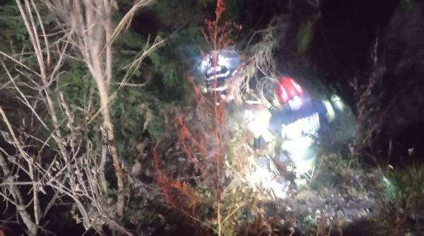 Salvatorii au găsit șoferul blocat în interiorul autoturismului răsturnat, într-o râpă adâncă de aproape 20 metri, el fiind cel care a reușit să solicite ajutorul, apelând numărul 112.