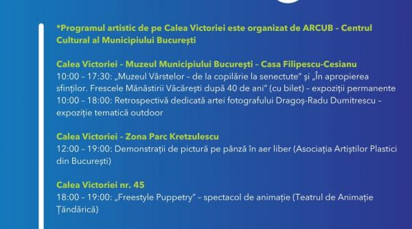 Pe parcursul celor două zile, bucureștenii și turiștii se vor putea bucura de un program artistic variat, coordonat de ARCUB – Centrul Cultural al Municipiului București, ce cuprinde atât demonstrații de pictură în aer liber, spectacole de animație și show-uri de acrobație, zone de relaxare și activități foto tematice, cât și acces la expozițiile permanente ale Muzeului Municipiului București – Casa Filipescu-Cesianu.
