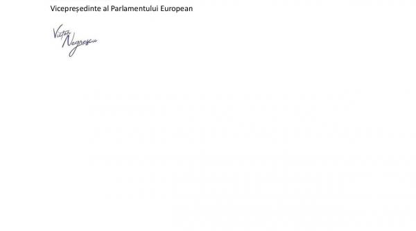 Redăm mai jos scrisoarea europarlamentului Victor Negrescu: