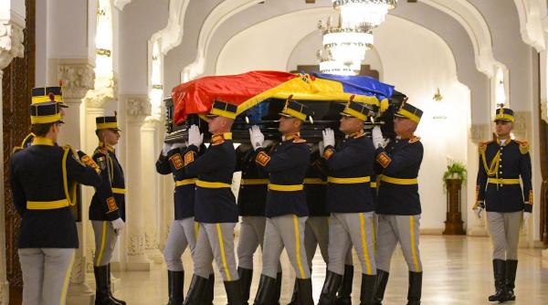 Sicriul cu trupul neînsuflețit al fostului președinte al României Ion Iliescu a fost depus pe catafalc în Sala Unirii.