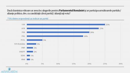 Sondajul Avangarde a fost realizat în perioada 22 – 30 august 2025, pe un eșantion de 1.070 de persoane, având o marjă de eroare de +/- 3,2%.