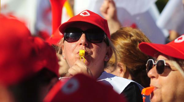 „Uniţi negociem, separat implorăm!”, „Salariile stau, preţurile cresc! Poşta Română nu e test de austeritate”, „Cerem deblocarea imediată a angajărilor în sănătate şi asistenţă socială”, „Program de lucru decent, fără epuizare!”, „Sanitas nu tace, Sanitas acţionează!”, „Normativul deficitar ne sufocă!” - au fost câteva dintre sloganurile scandate sau afișate pe pancarte de protestatarii din Piața Victoriei.