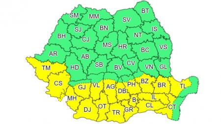 Administraţia Naţională de Meteorologie (ANM) a emis duminică o atenţionare Cod galben de caniculă ce vizează 19 judeţe până miercuri dimineaţa.