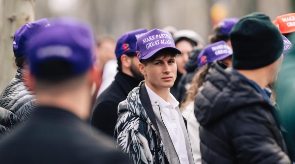 Așa s-a întâmplat chiar în preajma pregătirilor pentru Parada de 1 Decembrie, când în loc să fiu atent la stegulețe, soldați sau la mulțimea care mai repeta câte un „Uite, vin!”, m-am trezit privindu-i pe trecători cum se opresc, unul câte unul, în dreptul unui grup compact de tineri. Nu erau mulți, vreo treisprezece, dar suficienți cât să creeze rumoare. Și toți, fără excepție, purtau pe cap șepci mov, impecabile, ca scoase din cutie, brodate cu un mesaj care te făcea să clipești de două ori înainte să pricepi ce scrie: „Make Parties Great Again”.