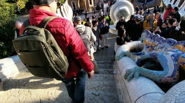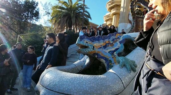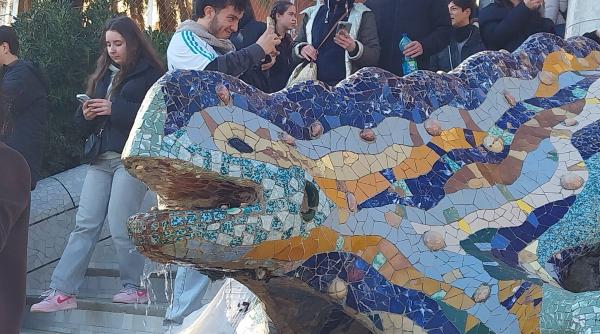 La intrarea principală a parcului se află și unul dintre simbolurile pe care Gaudi le-a lăsat Barcelonei: faimoasa sculptură-fântână colorată în formă de reptilă, cunoscută ca „El Drac”, realizată din mozaicuri colorate (trencadís). Este un simbol iconic al parcului și al Barcelonei, asociat adesea cu legenda lui Sant Jordi (Sfântul Gheorghe), fiind amplasată pe scara principală, chiar înainte de Sala Hipostilă, pe una dintre cele două scări care urcă spre terasă.